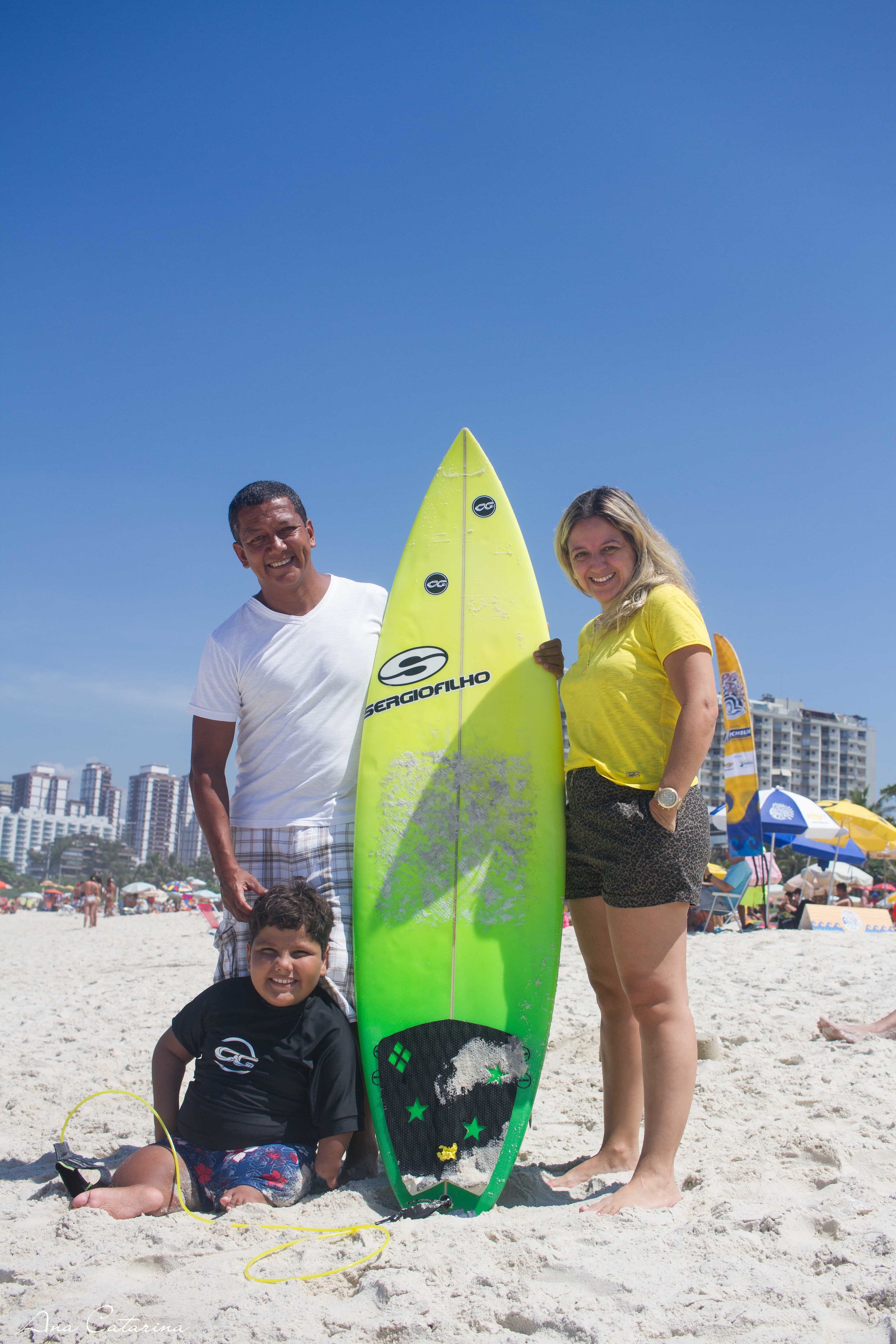Davi e os amigos Souto e a esposa. Essa é a prancha que Souto deu de presente a ele.