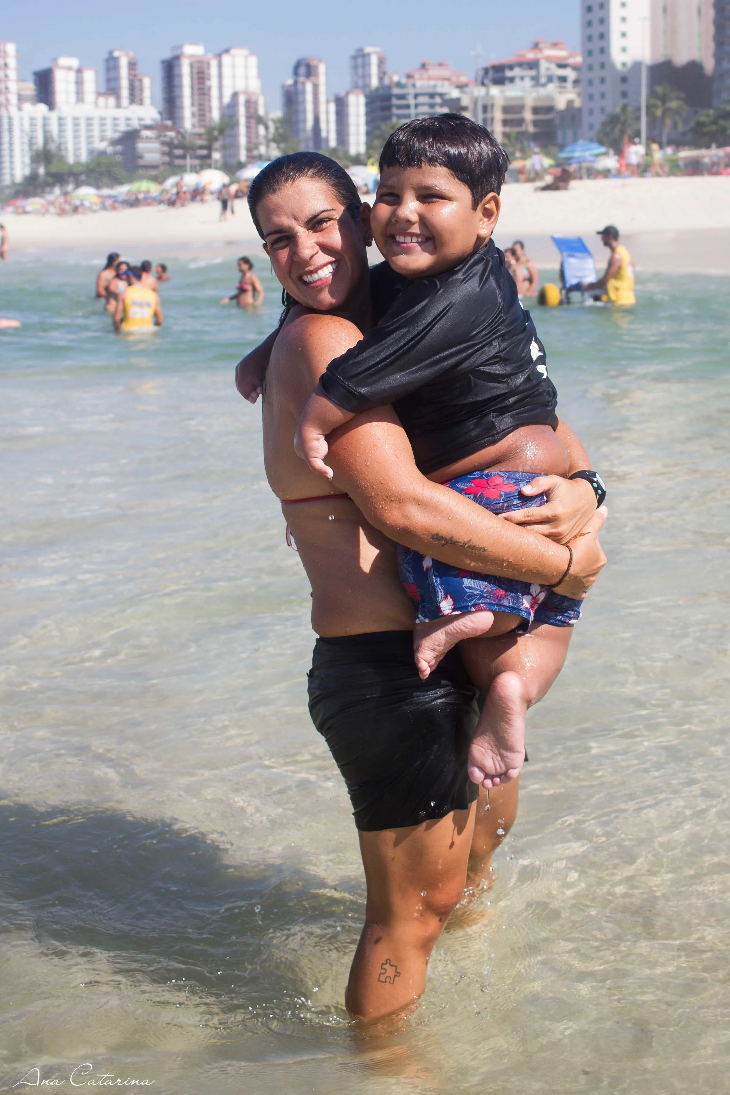 Nem que as tão prometidas frente fria e a chuva desabassem pelo Rio, essa sessão de fotos eu não perderia! A segunda frase dele foi: "eu quero surfar"! Então, 'vambora', Davi! O pai, por sinal, a cópia do Davi pegou a prancha e lá fomos nós pra água. Davi, super independente, caminhando a sua maneira e eu conversando com Luis, seu pai. A prancha do Davi também tem história, assim como o início dele no esporte. Davi estava na praia um dia, brincando na areia, quando um rapaz chamado Souto passou e perguntou se ele queria brincar com a prancha dele. Davi balançou a cabecinha. E la foram os dois pro mar. Na hora de ir embora, Luis, estava limpando a areia dele quando sentiu uma mão no ombro. Souto vira pro Davi e fala: "você gostou de brincar com a prancha?" Ele abriu o sorriso que desmonta qualquer um. "Então pode ficar, ela é sua."