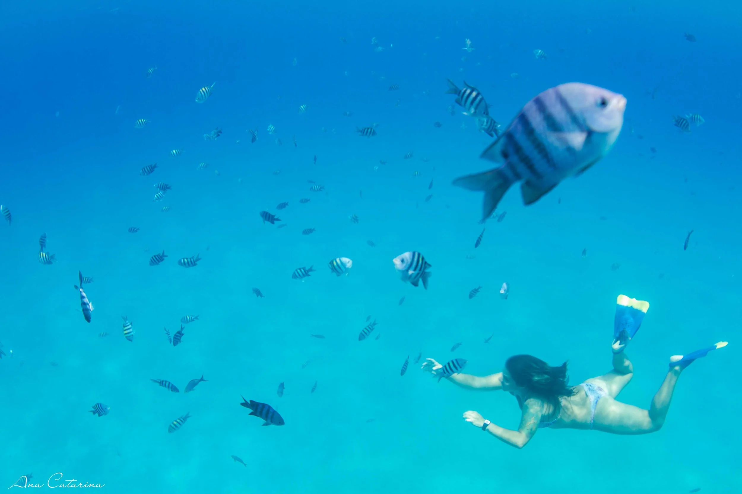 A praia do Sueste também é controlado pelo ICM-Bio e exige a carteirinha para a entrada, assim como o Atalaia. Na praia do Sueste só é possível mergulhar com colete, já que não é permitido que fiquemos em pé nos corais. Lá, pode-se contratar um guia que te leva direto ao ponto das tartarugas e tubarões, as espécies marinhas mais visadas pelos turistas. Te garanto que economizará muito tempo com um guia, que custa em média 50 reais por pessoa. Vale o preço! Fui duas vezes ao Sueste, mas em virtude do vento, aconselho a ir bem cedinho. O único ônibus que circula na ilha tem ponto final na “porta” da praia.