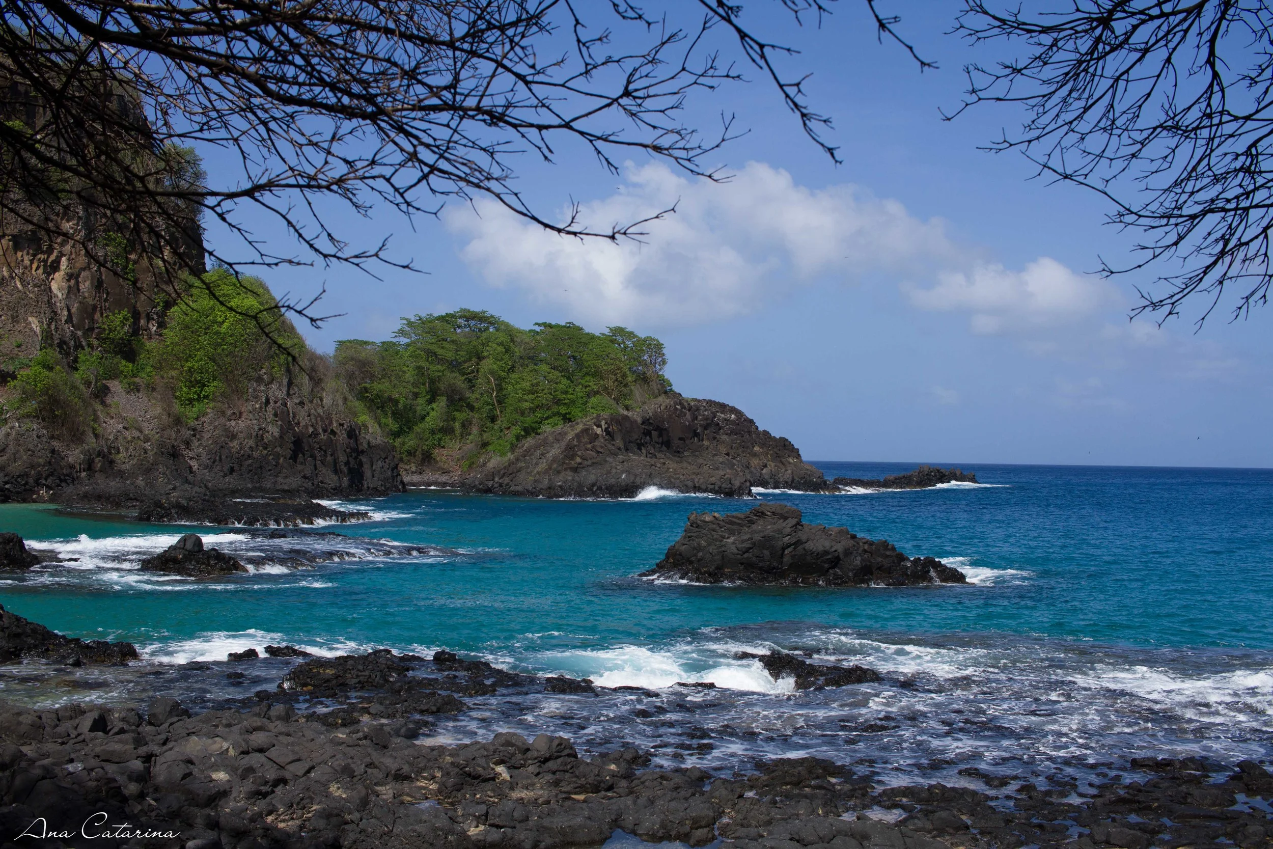 No caminho para a praia do Leão, há um forte e um local chamado Ponta das Caracas com uma vista muito bacana. É como se fosse uma ponta de ilha, com muitas pedras vulcânicas, uma imensidão azul de mar e a uma sensação de paz e liberdade maravilhosa. A praia do Leão é uma das praias do Mar de Fora. É que na ilha, há a costa que dá de frente para o continente brasileiro, o chamado Mar de Dentro e o “litoral” que dá de frente para a África, o Mar de Fora. O mar de fora é muito mais batido, mexido e recebe mais vento.