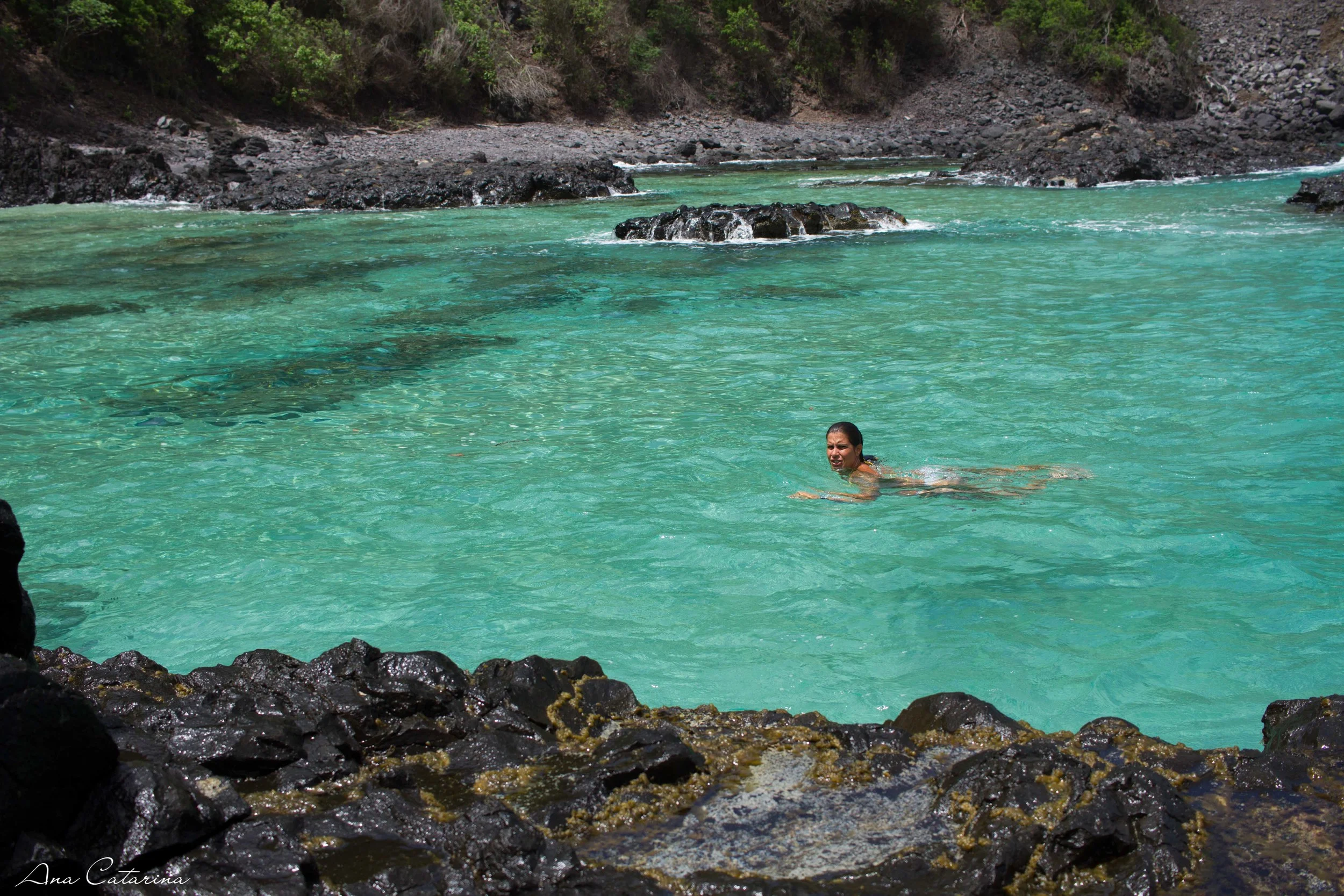 Eu, linda e charmosa, nas águas surreais da Praia do Sancho.